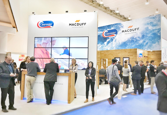 Based on the success of the stand that we produced for Macduff Shellfish at previous events the brief was for us to further develop this so that it could work for both Macduff and Canadian based Clearwater Seafoods who purchased Macduff for £98m back in 2015.